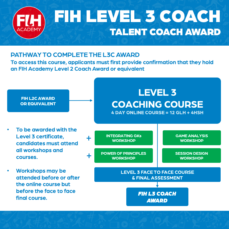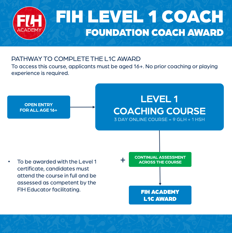 The FIH Academy provides support for Athletes, Coaches, Umpires, Officials, Executive, and Events. The Coaching Courses are competency-based to provide an internationally consistent assessment for all coaches and all courses. This allows coaches to receive an internationally recognised Coaching accreditation.