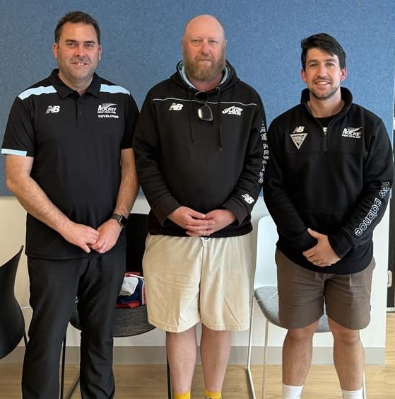 Image: New Zealand representatives Bruce Brownsey (Auckland Hockey, FIH Educator), James Birkefeld (Wellington Hockey, FIH Educator), and Ben Owers (FIH Trainer)